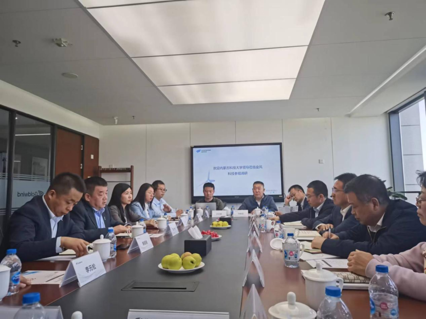 金风科技股份有限公司业务副总裁兼北方大区总裁王进对成涛、任慧平一行来访表达了热烈欢迎,对公司的发展历程进行了介绍。他希望通过此次交流为契机,进一步加强沟通交流,实现校企合作的精准对接。