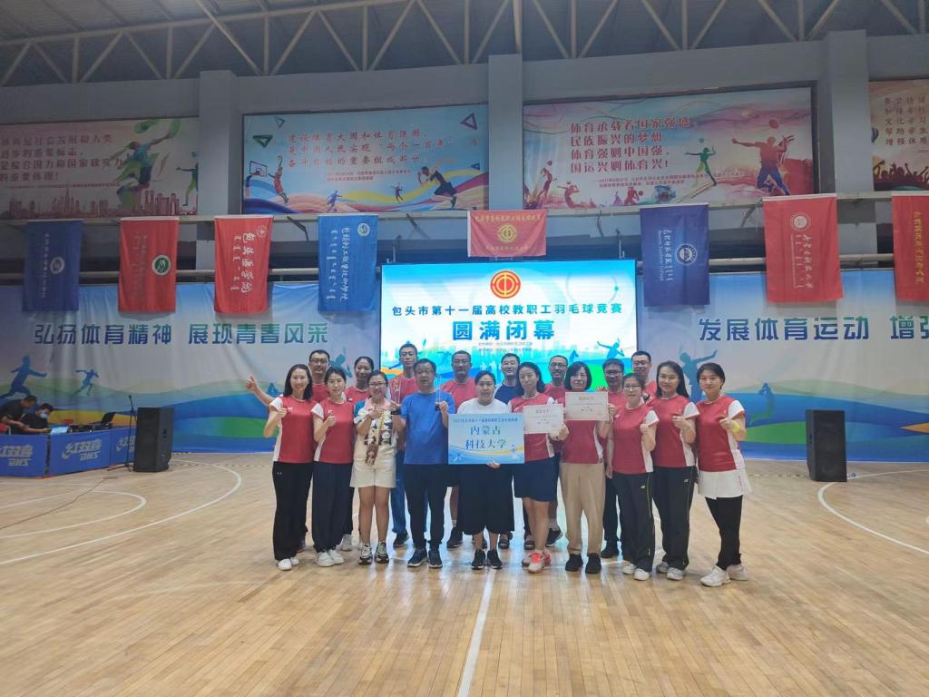 6月17日,由包头市总工会、包头市教科文卫体工会主办,包头轻工职业技术学院承办的包头市第十一届高校教职工羽毛球竞赛在包头轻工职业技术学院体育馆正式开赛。校党委书记成涛带队参赛,36365官网28名教职工组成的教职工羽毛球队,经过激烈角逐,斩获体育教师专业组冠军和非体育专业组亚军。