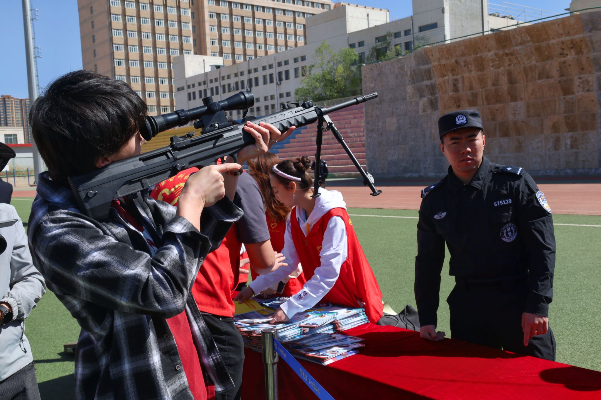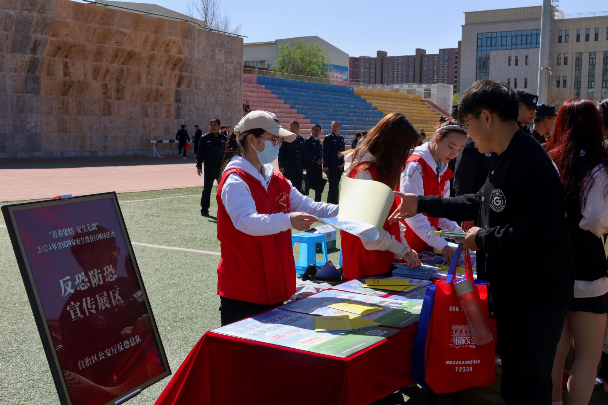 自治区党委政法委,自治区国家保密局,自治区国家安全厅,自治区公安厅反恐怖总队、禁毒总队、刑侦总队等各部门工作人员分别就国家安全、保密安全、防范邪教渗透、反恐怖主义、防范电信网络诈骗、禁毒宣传教育进行现场宣讲。现场活动既有警用装备展示体验,又有知识点学习小游戏,形式新颖、内涵深刻,多样化的宣传教育方式深受师生喜爱。