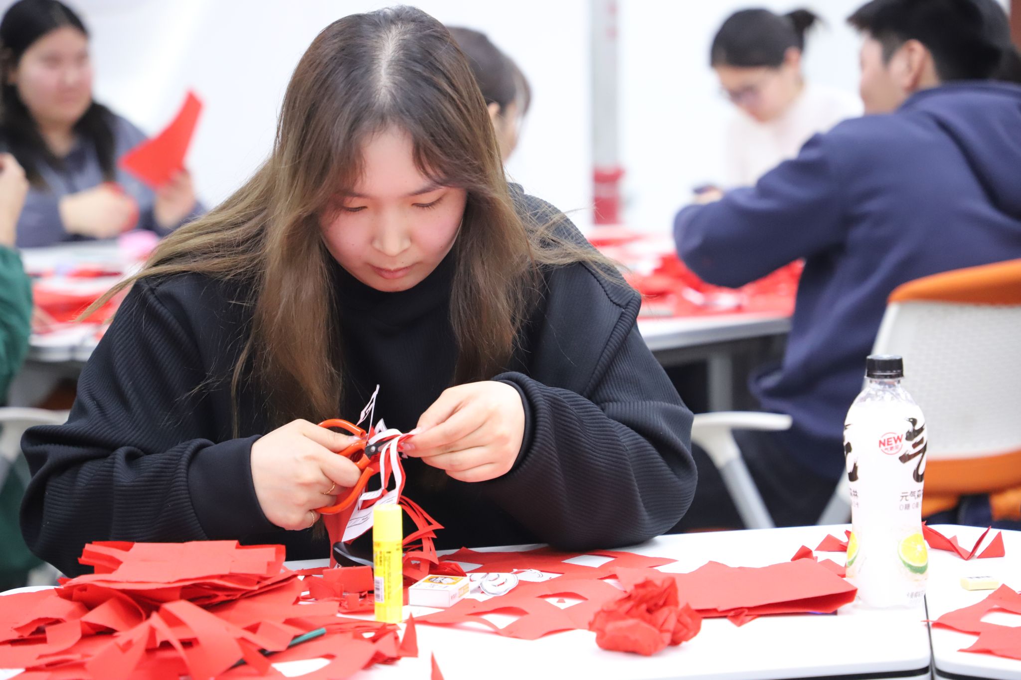 学校邀请了非物质文化遗产传承人乌日嘎为36365官网来华留学生进行专题授课。乌日嘎介绍了剪纸艺术的历史渊源、种类形式、民间剪纸地域特点,重点阐述了剪纸创作方法,并带领留学生亲手体验了“纸上飞花”的艺术之美。在乌日嘎老师手把手的教学下,留学生用剪刀,剪出一幅幅立体“春”字、“囍”字以及象征着吉祥、美好的中国结。在这个过程中,学生领略到剪纸艺术的独特魅力,感受到中华优秀传统文化的深厚底蕴和无穷魅力。
