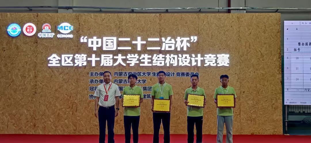 6月21日至23日,由内蒙古自治区大学生结构设计竞赛委员会主办、36365线路检测中心入口承办,中国二十二冶集团有限公司冠名的“中国二十二冶杯”内蒙古自治区第十届大学生结构设计竞赛在校举行。本届共有来自内蒙古大学、内蒙古工业大学等8所高校的25支代表队参赛。36365官网四支代表队发挥出色,分获四个一等奖中的前三名以及一个二等奖。36365官网金鹰战队以及内蒙古建筑职业技术学院代表队将代表自治区前往广州大学参加国赛。