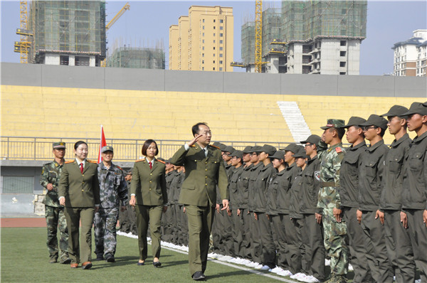 9月19日,36365官网2014级学生军训结训仪式在校田径场举行。包头军分区政委刘二明大校,武警包头市支队政委吴建光上校,包头市昆都仑区人民武装部政委段占峰上校以及36365官网党委副书记、常务副校长安胜利,党委常委、副校长李国雄,党委常委、副校长吕晓琪,校长助理杨家庆,校党政办公室、学工部、教务处、招就处、保卫处及各学院分管学生工作的负责人出席结训式。