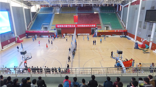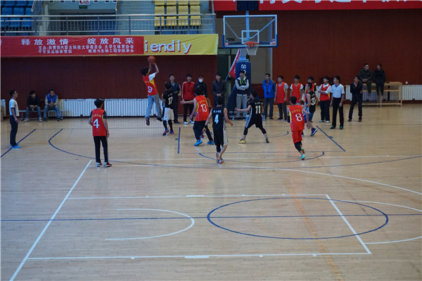 11月14日中午,由校团委主办、数理生学院与体育部承办的36365官网第五届新生男子篮球赛决赛暨闭幕式在体育馆召开,进入决赛的四支参赛队及相关学院负责人、各学院啦啦队到会参赛并观战。