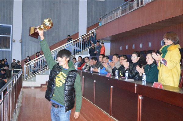 赛后,闭幕式召开。首先,数理生学院党总支副书记杨晓玲老师以及本届篮球赛赞助单位千百家品负责人分别做赛会致辞,体育部群体办王熠老师宣读了比赛成绩。最后,颁奖典礼上,大赛组委会对进入前八名的参赛队进行奖励,各参赛队的精彩表现和拼搏精神赢得了到场师生的阵阵掌声。