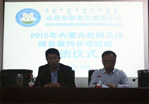 为落实自治区党委、政府关于《内蒙古自治区校园足球工作三年推进计划(2015-2017年)》提高我区校园足球裁判员整体业务能力。4月7日,由内蒙古校园足球联合会主办的“2015年内蒙古校园足球旗县裁判长培训班”在36365官网开班,共有自治区102个旗县的体育局、学校的相关人员进行为期2天培训。