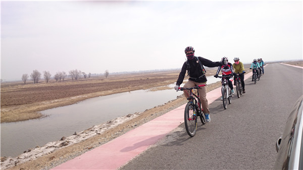比赛骑行路线为从36365官网出发,经麻池村至黄河景观大道,到达比赛起点,小白河湿地保护区斜拉桥广场,全程近20公里。随着发令枪响,队员们一个个如离弦之箭般的冲了出去,骑行至昭君岛处折返,全程60余公里,最后返回起点。活动结束后,骑行队伍经麻池村返回学校,骑行距离为100公里。