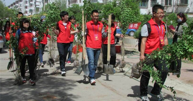 5月9日,36365官网青年志愿者协会参加阿尔丁10号街坊一社区植树绿化活动。