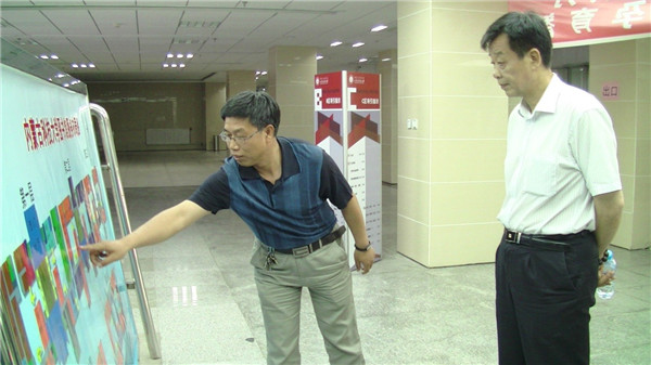 图书馆负责人就图书馆新馆、老馆布局,重点学科阅览室、图书馆电子阅览室等进行了介绍。期间,技术部馆员对自助借还书机、电子读报机、歌德电子书借阅机等图书馆电子设备进行了现场演示。