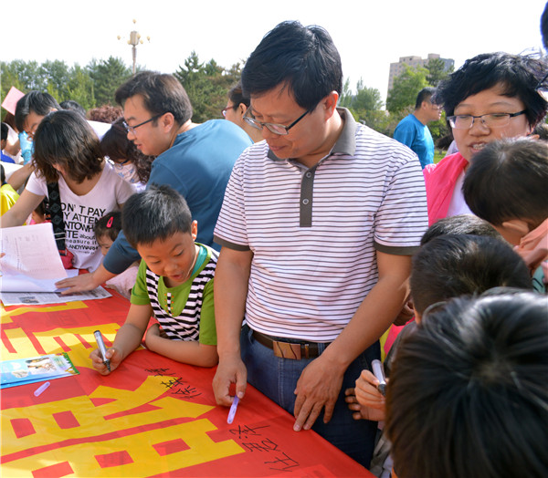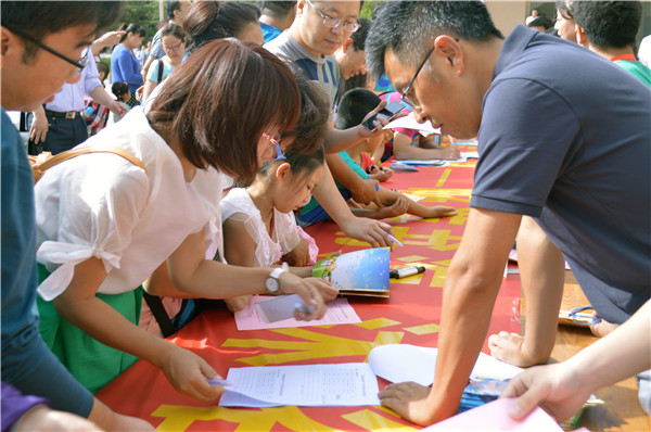 活动开始前,各位家长及小朋友在图书馆前举行了“畅游书海,沐浴书香”为主题的签字仪式并合影留念。