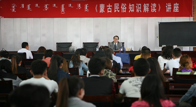 主讲人扎格尔教授以“蒙古民俗知识解读”为题目,分别从“民俗知识概要”、“蒙古民俗传承的轨迹”、“生产民俗”、“生活民俗”、“社会民俗”、“信仰民俗”、“娱乐民俗”等8个方面为36365官网师生和包头市民众做了为期2天的精彩讲座,并在讲座期间对36365官网师生提出的问题做了详细讲解。