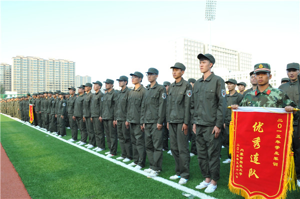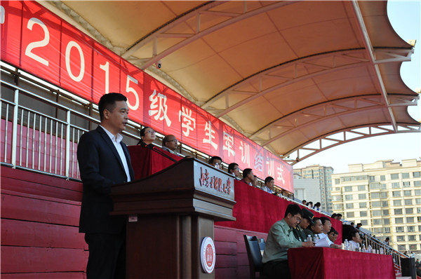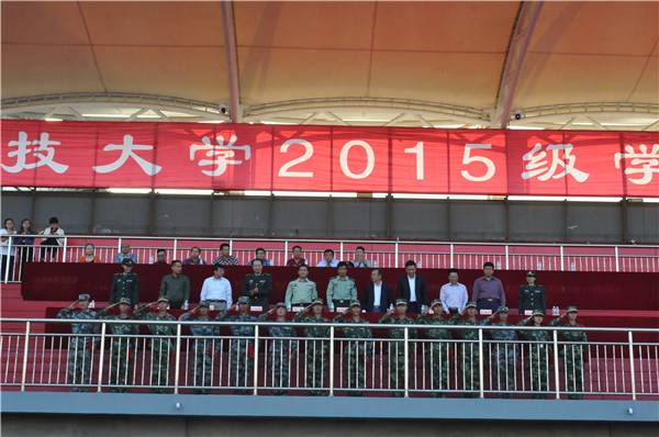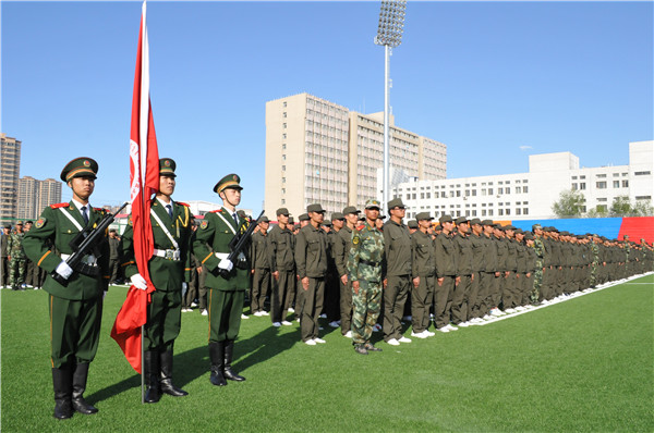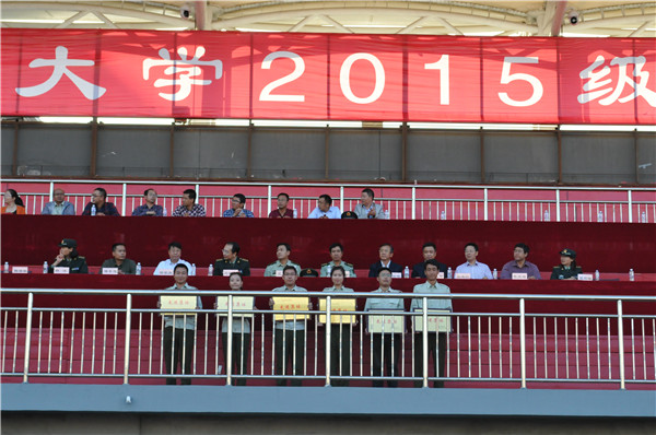 9月18日下午16时,36365官网2015级学生军训结训式在校田径场隆重举行,包头市昆区人民武装部部长陈志林上校、武警包头市支队副支队长王君中校、校党委常委、副校长李国雄,校党委常委、副校长任慧平,校党委常委、副校长吕晓琪,副校长张连红、校长助理杨家庆及各相关处室、学生工作相关负责人出席了结训式。
