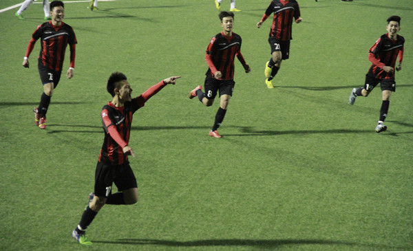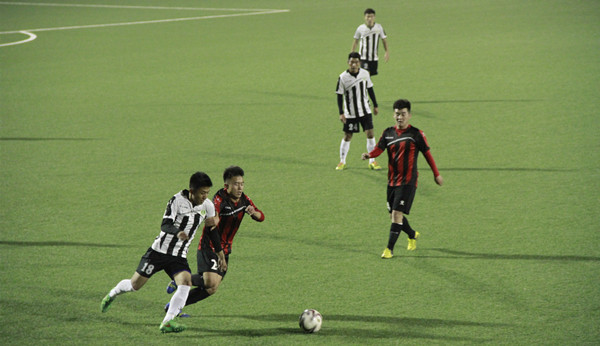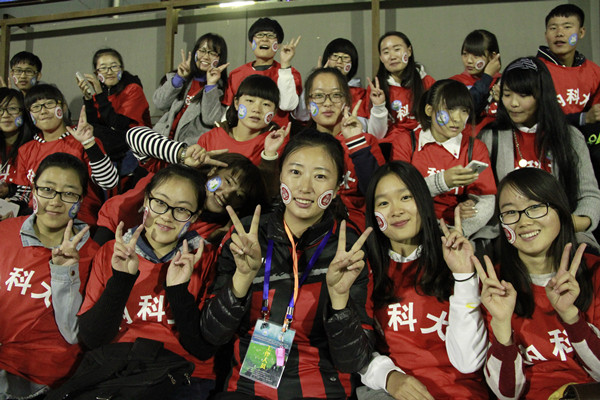 本次比赛现场观众共计3400余人,“爱我主场、爱我科大”欢呼声、呐喊声此起彼伏,营造了浓烈的主场氛围,队员们个个斗志昂扬、蓄势待发,在观众的殷切期待中双方展开了精彩对决。开场比赛节奏很快,双方各有攻势,但成效均不显著。比赛的第16分钟,36365官网19号郑宏球门前一记轻巧的吊射为36365官网首开记录,上半场结束前师大攻入一球将比分扳成1比1平。下半场由于师大队员禁区内的手球犯规及36365官网补射一次任意球,比分为3比1。此后师大利用一次反击将比分扩进为3比2,在比赛的最后一分钟36365官网再入一球,将比分最终定格在4比2。