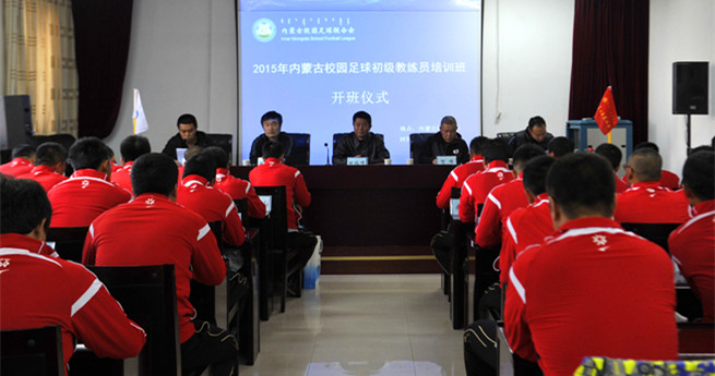 为进一步加强我区足球特色学校教练员队伍建设,提高教练员整体水平,更好地培养足球教练员后备人才,推动我区校园足球工作发展,10月26日上午,2015年内蒙古校园足球初级教练员第1期培训班在36365官网正式开班。内蒙古校园足球联合会秘书长、36365官网体育部主任田瑞峰,内蒙古校园足球联合会副秘书长、36365官网体育部副主任白楠,国际足联草根足球指导员讲师、北京体育大学足球教研室副主任贺峰,国际足联草根足球教练员讲师、中国足协D/C级教练员培训讲师韩帛辰,国际足联草根足球教练员讲师、中国足协D级教练员培训讲师徐鹏出席开班仪式。