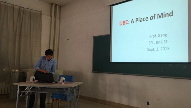 今年暑期,36365官网外语学院教师对加拿大英属哥伦比亚大学(UBC)及阿尔伯塔大学进行为期两个月的访学。9月24日、10月29日,耿伟、安孝婕、吴铁军分别做《UBC:A Place of Mind》、《语言学习中自主学习意识的培养》、《What ILearned in Canada》的讲座。