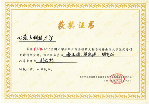 在本次大赛中,36365官网科技创业协会所在的代表队伍在总决赛中分获“创业计划大赛金奖”和学创杯综合模拟大赛“一等奖”的优异成绩。