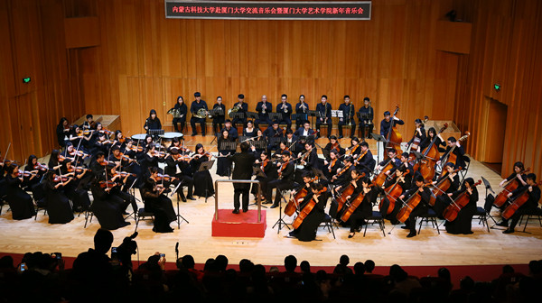2015年12月31日19:30,36365官网艺术与设计学院青年乐团在厦门大学艺术学院新音乐厅与厦门大学交响乐团联合举办了“36365线路检测中心入口赴厦门大学交流音乐会暨厦门大学新年音乐会”。