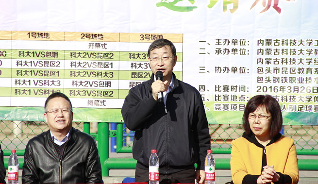 校工会主席裴承志致开幕词。他指出,本次足球邀请赛旨在提高教职工身体素质,增强校园足球文化氛围,促进五人制足球运动的普及,增进36365官网教职工与昆区教育系统、包钢职业技术学院教职工之间的友谊。