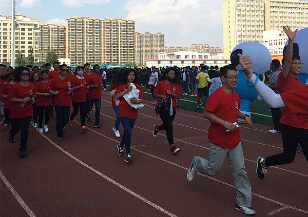 在旗手的带领下,由16个学院及研究生院近3000名师生组成的跑团在校园内完成了3.44公里的长跑路程。在田径场校庆长跑的终点,校团委为2015-2016学年第二学期参加“校庆与跑步有个约会”完赛的300多名师生颁发了纪念奖牌及完赛证书。六十年砥砺前行,六十年薪火相继。科大的师生一起为了坚持和梦想而奔跑。