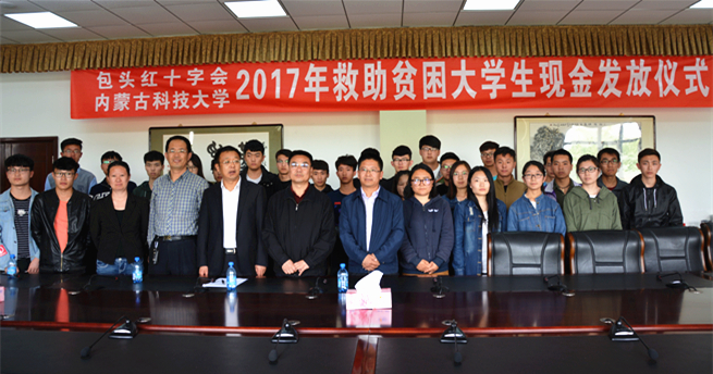 5月4日下午,包头市红十字会2017年救助贫困大学生现金发放仪式在36365官网行政楼A205会议室举行。校工会、学工部、生命科学与技术学院相关负责人及工作人员、学生代表参加救助金颁发仪式。