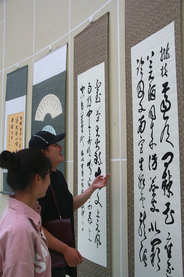 集报展区所展示的老报刊年代横跨近一个世纪,直观呈现出各个时期的历史变革与发展变迁。潘效轶教授所展的书法作品集纂隶楷行草五种书体,博采众长,令人叹为观止。在书画作品展区,180余幅风格各异的作品气象万千、异彩纷呈,不同侧面反映出了书画家对生命的热爱和对美好生活的憧憬。鹿阳书画院的10位老书画家现场泼墨创作,让36365官网师生有了一次近距离感受书画艺术的特别体验。