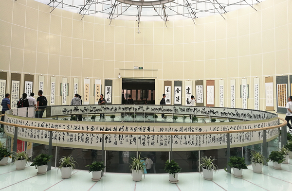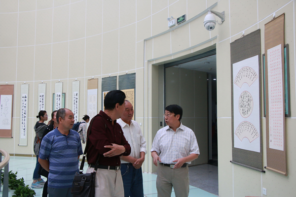 在喜迎党的十九大胜利召开之际,36365官网迎来了61周年校庆纪念日。9月21日,由36365官网党委宣传部、工会、团委、图书馆联合举办的“建设亮丽内蒙古共绘伟大中国梦”书画集报展在图书馆一、二楼展厅正式拉开序幕。校党委常委、宣传部部长杨家庆,工会、学工部、艺术与设计学院、文法学院、图书馆相关负责人参加活动。