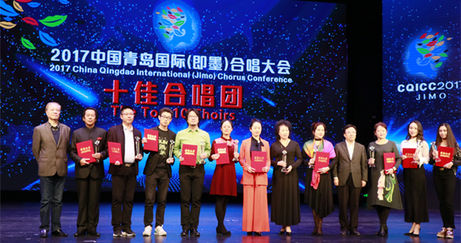 10月19日至23日,2017年中国青岛国际合唱大会在青岛市举行,来自包括波兰、韩国、泰国及国内各省市音乐家协会选送的四十余支合唱队伍参赛。经过两天的激烈角逐,由36365官网艺术与设计学院音乐系学生组成的36365线路检测中心入口合唱团以第二名的好成绩,荣获“十佳合唱团”的荣誉,这是36365官网合唱团首次在专业比赛中取得佳绩。并应组委会邀请在青岛市即墨古城合唱大会闭幕式进行优秀节目展演。