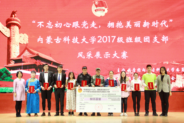 最终理学院、信息工程学院、矿业与煤炭学院、文法学院、土木工程学院、能源与环境学院、经济与管理学院、马克思主义学院、化学与化工学院和生命科学与技术学院等10个班级团支部获800元班级建设金的奖励。