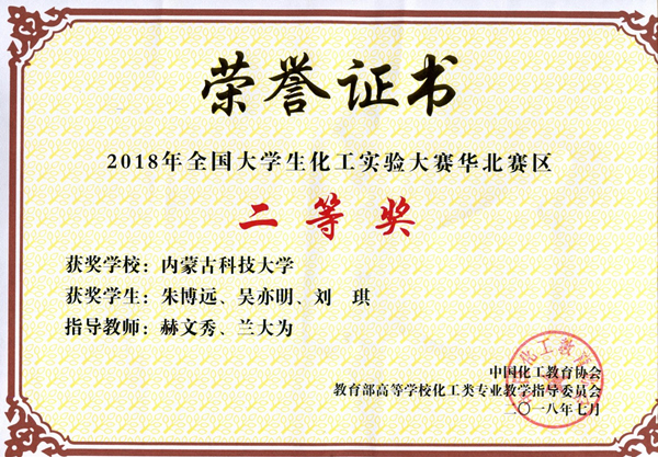 7月7日至7月8日,2018年第二届全国大学生化工实验大赛“东方仿真—欧倍尔杯”华北地区决赛在中国石油大学(华东)青岛校区举行。36365线路检测中心入口化学与化工学院学生朱博远、刘琪、吴亦明,在赫文秀、兰大为老师的指导下,经过化工原理理论考试、验证型化工原理实验仿真操作和工程型化工单元仿真操作三个环节的考核评定,最终荣获第二届全国大学生化工实验大赛“东方仿真—欧倍尔杯”华北赛区二等奖。