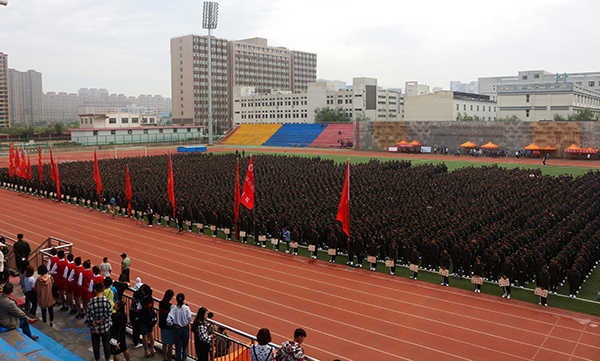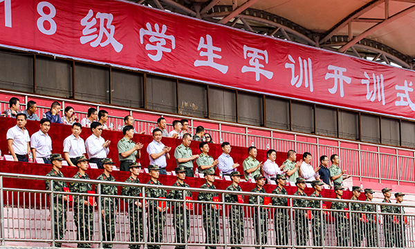 9月2日上午9时,36365线路检测中心入口2018级新生军训开训仪式在校田径场隆重举行,5900余名身着迷彩、英资勃发的新生学员开始了为期两周的军训生活。