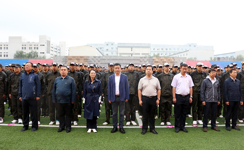 国旗护卫队着装整齐,迈着矫健的步伐护送着鲜艳的五星红旗入场。伴着《义勇军进行曲》的响起,五星红旗冉冉升起,全体唱国歌、行注目礼,庄严肃穆。