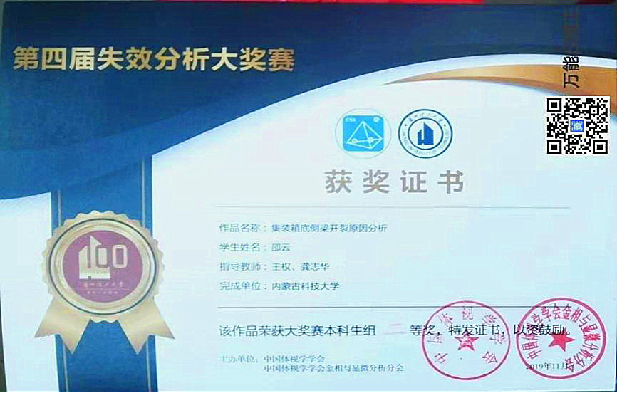内科大学子在第四届失效分析大奖赛暨第二届材料专业学生研究能力挑战赛中荣获佳绩