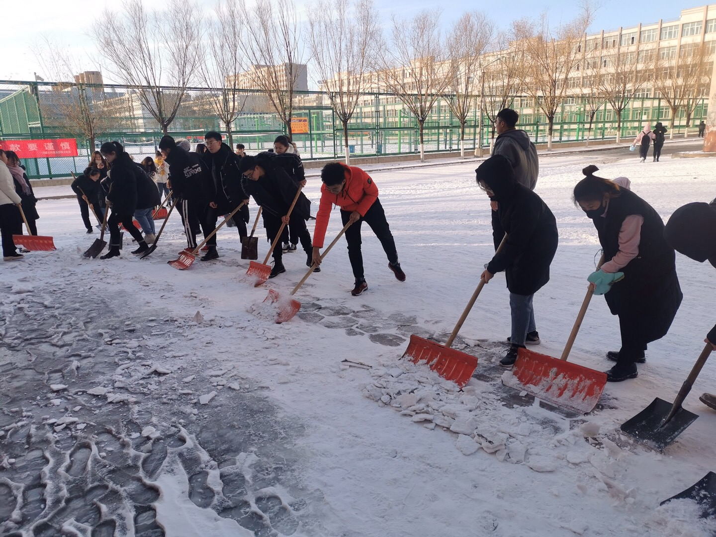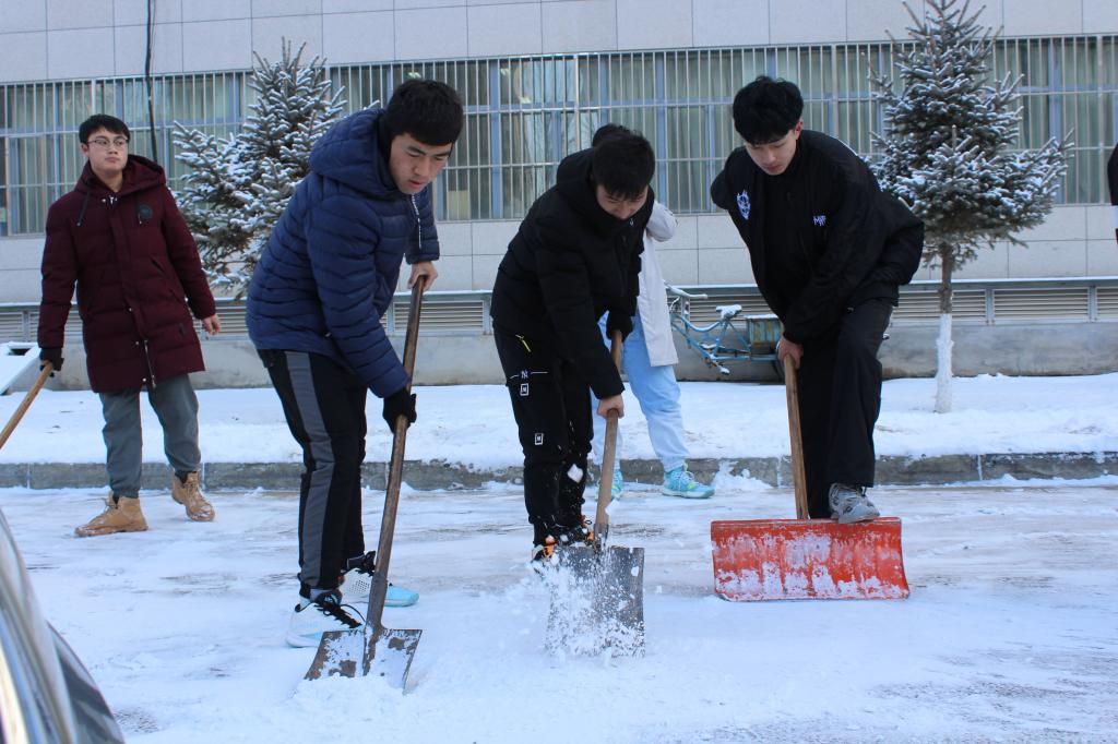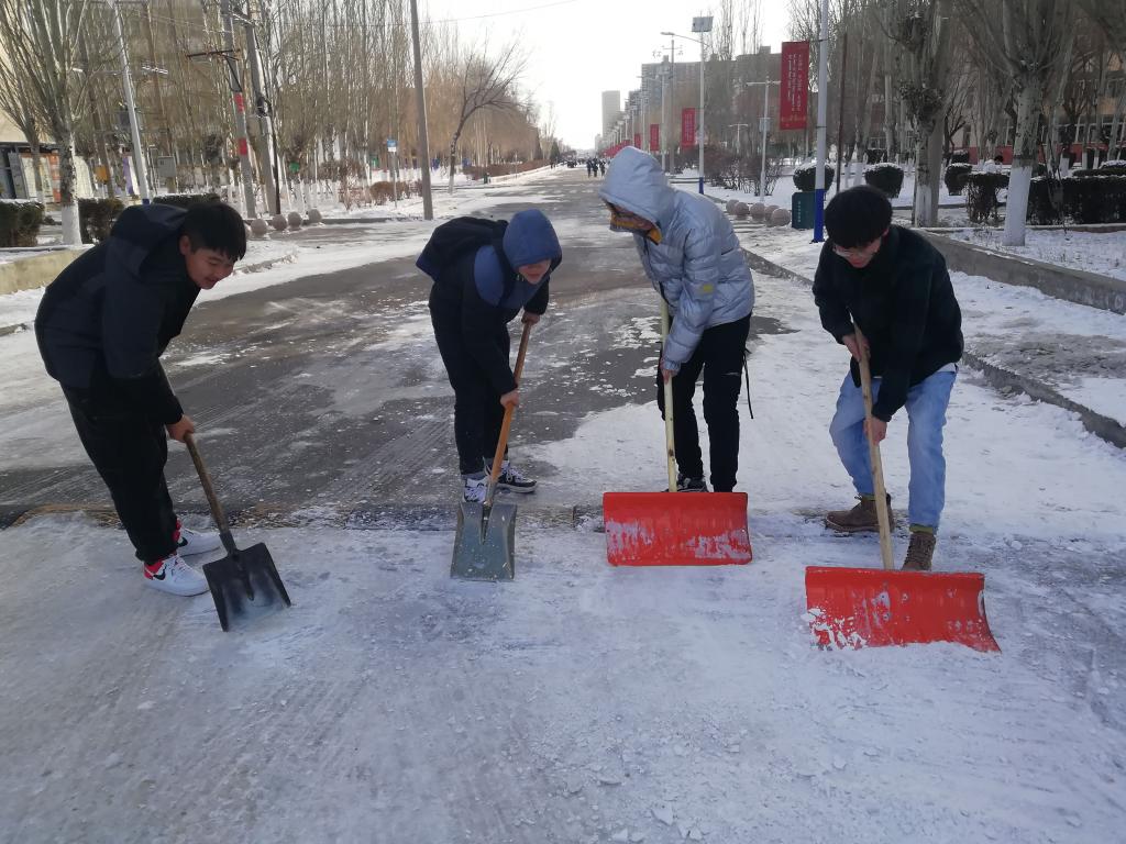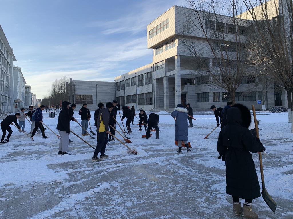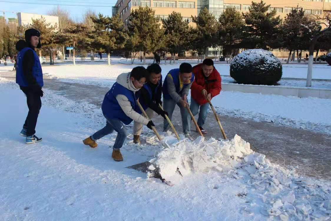 突如其来的降雪让36365线路检测中心入口校园银装素裹。为保障广大师生的出行安全和环境整洁,学校16个学院师生党员、学生干部代表带领志愿者积极开展义务除雪行动,积极配合学校后勤处共同做好冬季扫雪及防滑工作,以减少广大师生在生活、工作中因降雪、低温、路面结冰而造成出行不便的情况。尽管天气严寒,但广大师生团结协作、干劲十足,用推雪板、铁锹、扫帚等工具,清扫校园主干道上的道路结冰。在良好的合作与配合中,大家高效率地完成了扫雪任务,为保障学校校园安全贡献出了一份力量。