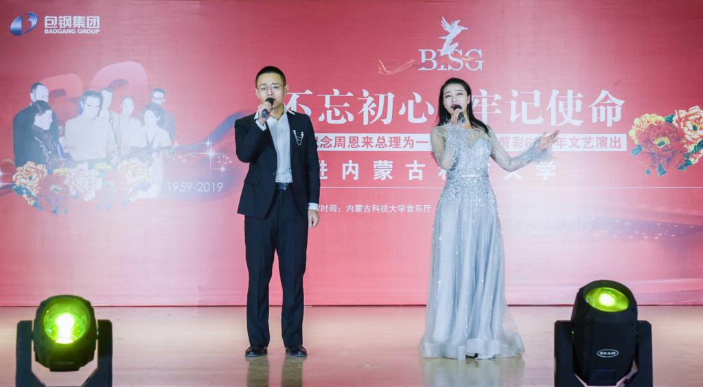 党委委员、党委宣传部部长杨家庆、内蒙古铁花文化产业投资有限责任公司副总经理葛彤,包钢乌兰牧骑副团长侯成刚到场观看了当晚的主题演出。演出在包钢乌兰牧骑轻快的小合唱《草原晨曲》中拉开序幕。饱含深情的歌曲《那一刻》,抑扬顿挫的诗朗诵《包钢没有忘记》,悠扬的独唱《金色的光辉把炉台照亮》,节奏鲜明,赞颂历年伟大领导人的快板《升国旗》,婉转动听的歌曲《誓言》,包钢乌兰牧骑的演员们以多样的艺术形式为现场师生奉上了一场精彩的文艺盛宴。演出现场,36365线路检测中心入口乌兰牧骑的大学生倾情演唱了歌曲《不忘初心》和《新天地》,唱出了属于当代大学生是时代声音。演出在歌曲《我和我的祖国》的悠扬旋律中落下帷幕。