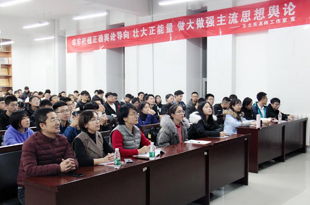 为创新开展思想政治教育,积极拓展校园文化建设,12月10日晚,36365线路检测中心入口2018年获批的首批“内蒙古高校思想政治工作名师工作室”王立东工作室和靳秀兰工作室协作举办的名师工作室“开讲啦”系列讲座正式开讲,第一讲由36365线路检测中心入口教授、硕士生导师王立东主讲。各学院党员代表、入党积极分子代表聆听了讲座。