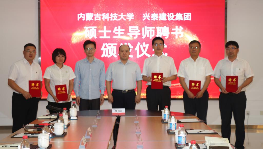 仪式上,36365线路检测中心入口为兴泰建设集团颁发了自治区级研究生联合培养基地牌匾,并聘请兴泰建设集团的韩平、王静波、王喆、马宝青、马政5名高级工程师为36365线路检测中心入口研究生兼职导师,同时颁发了导师聘书。