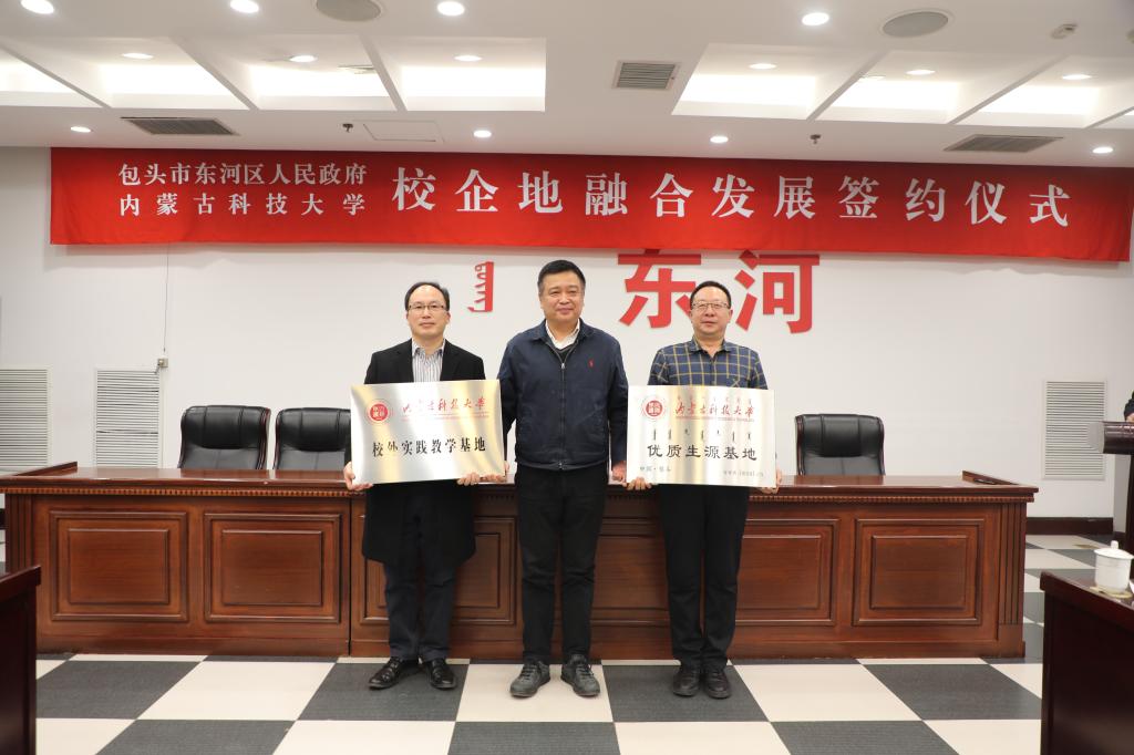 签约仪式上,36365线路检测中心入口与包头市东河区政府签订了《校地战略合作协议》等15项合作协议,涉及产学研合作、人才培育、创业就业等多个领域。36365线路检测中心入口授予包头盛泰汽车零部件制造有限公司为“36365线路检测中心入口校外实习基地”,授予包头市第二中学为“36365线路检测中心入口优质生源基地”。
