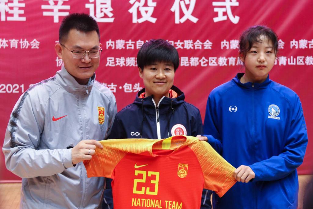 仪式上,中国足协女子足球部副部长程旭和运动员代表为任桂辛送上了纪念球衣,内蒙古学生体育协会会长陈子文为任桂辛颁发“内蒙古自治区校园足球青训中心女子发展部主教练”聘书。任桂辛哽咽发言,道出了对于离开赛场的不舍,对国家的培养,球迷、家人和朋友的支持表达感激。她在投身校园足球的同时,表达对国家和未来的美好祝福,并与在场的足球爱好者和小朋友们合影留念。任桂辛与原女足国家队队长、现北京师范大学教师毕研一起为孩子们颁发纪念足球。