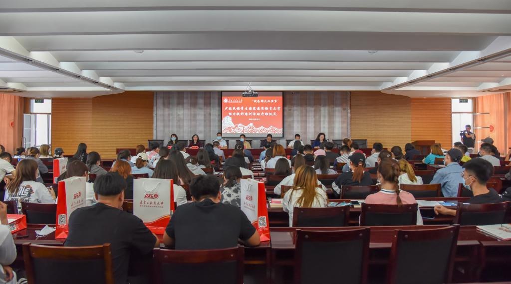 5月27日,36365线路检测中心入口少数民族学生国家通用语言文字应用能力提升培训班开班仪式在行政楼A201举行。校党委副书记、校长任慧平,党委副书记冯志强出席开班仪式。