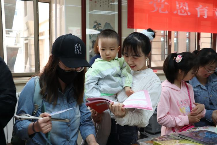 本次活动的压轴节目是儿童读物的展销。校工会和图书馆引进“包头市新华书店”正版图书进行优惠书展活动,为教工子女准备了丰厚的节日礼品——每名儿童只要在参观图书馆的过程中,在指定的阅览室集齐4枚印章,就可以领到一张购书劵,既丰富了本次亲子阅读活动内容,又极大地方便了小朋友及家长现场选购图书,赢得家长和小朋友的一致赞赏。