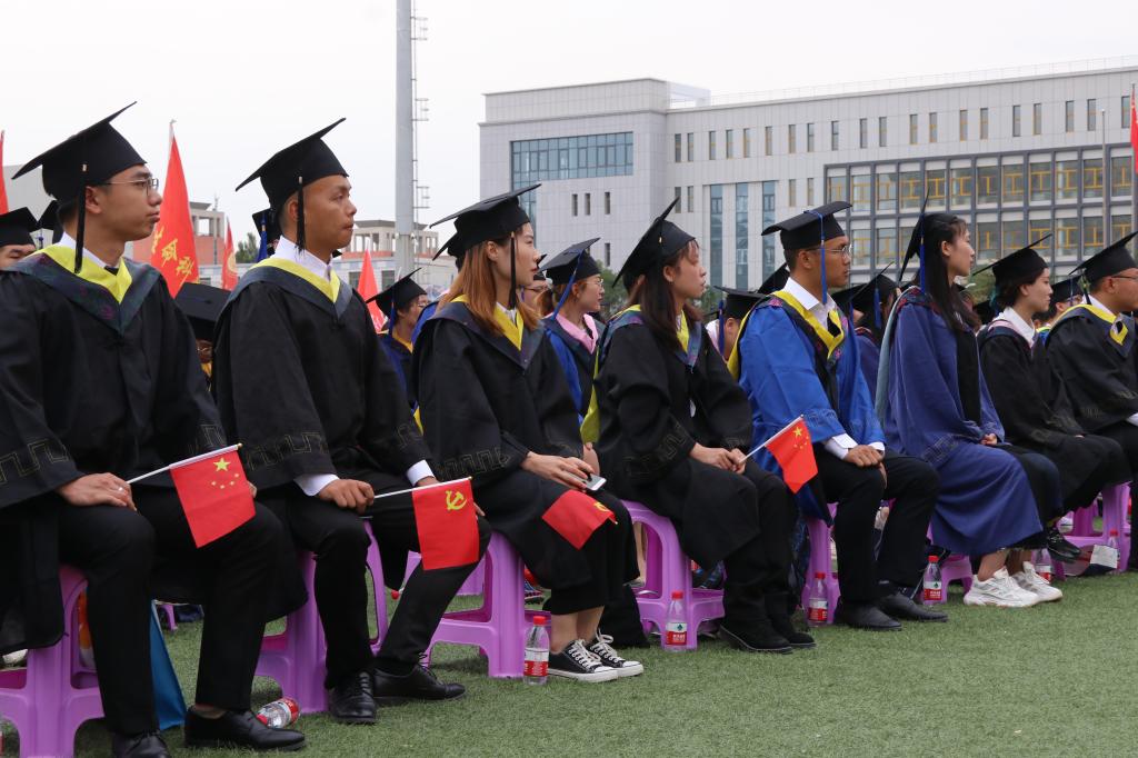 典礼伊始,国旗护卫队护送国旗入场,在场人员全体起立,伴随着雄壮的《义勇军进行曲》,鲜艳的五星红旗冉冉升起,拉开了毕业典礼的序幕。