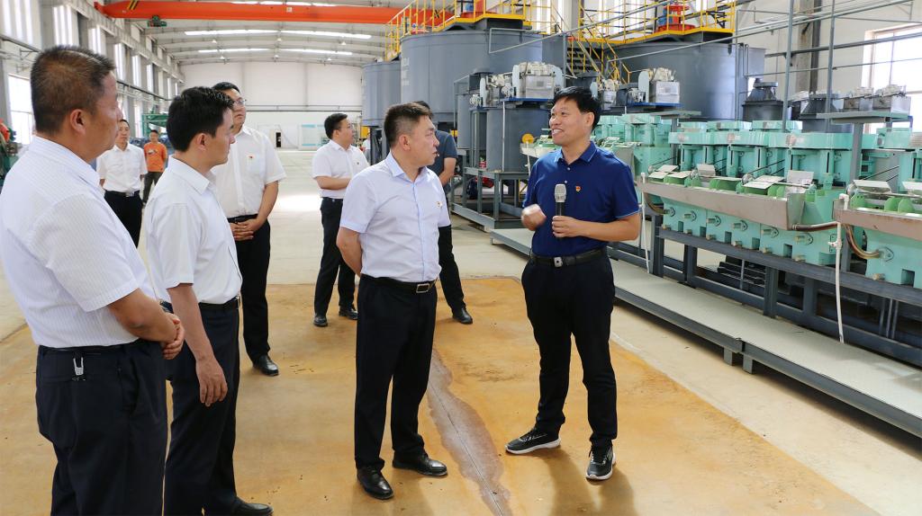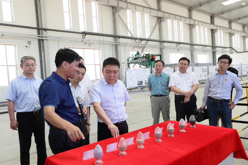 副校长赵增武详细介绍了研究院建设背景、科研平台运行和学校承担的国家重点研发计划“白云鄂博稀土矿产资源基地固废循环利用集成示范项目”进展情况。康志刚书记详细询问了研究院科研工作开展及成果转化情况,指出要进一步加快推进项目组织实施,充分发挥白云鄂博矿区的独特资源优势,加强与地方企业合作,将科研成果转化为现实生产力,促进包头市稀土产业高质量发展。