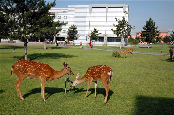 文章称,36365线路检测中心入口位于包头市,包头的蒙语是“包克图”,意思是“有鹿的地方”。而36365线路检测中心入口也是全国唯一一所校园里有梅花鹿奔跑的高校。这些可爱的梅花鹿就散养在校园里。它们在落日里安静地觅食,嬉戏。人与自然和谐共生,静谧的校园里多了几分灵动的气息。