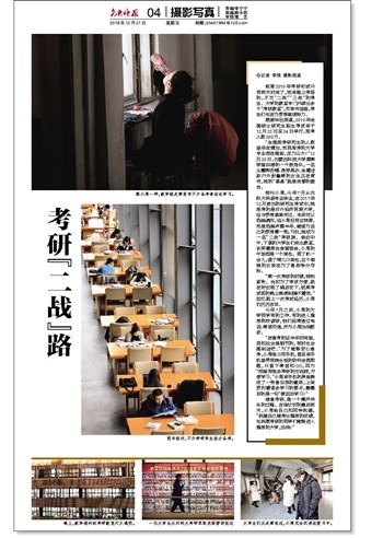 距离2019年考研初试只有两天时间了,即将踏上考场的,不乏“二战”“三战”的考生。大学的教室专门开辟出多个“考研教室”,市图书馆里,考生们也在为梦想继续努力。