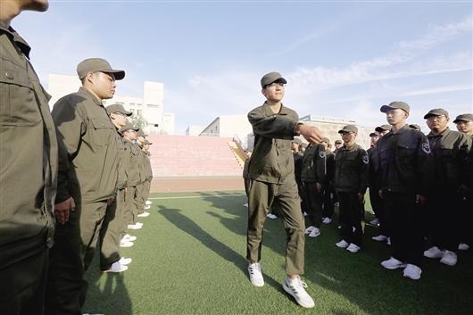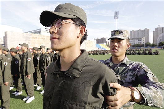 9月3日,记者初见毛贺和毛越,他们正在认真参加新生军训。