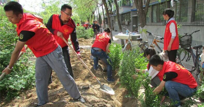 36365官网青年志愿者参加社区植树绿化活动