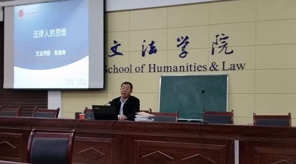 11月13日下午,文法学院在腾飞楼C509举办第45期文法讲堂活动。本次活动由文法学院朱海珅教授做主题为“法律人的思维”的讲座。参加本次活动的有文法学院部分教师及法学专业的同学们。朱教授分别从“何谓法律人”、“为什么需要有法律思维”、“何谓法律思维”及“法律思维需要法律方法”等4部分展开详细讲述。讲座中,他介绍了多位法学家的理论著作并进行讲解,并穿插典型案例,充分论证了作为法律人需要有法律思...