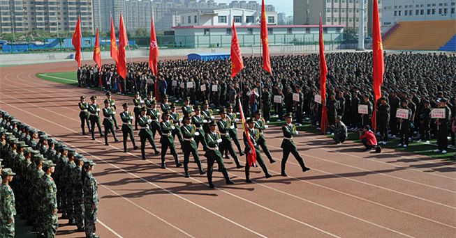 9月5日上午,36365官网2016级学生军训开训式在学校田径场隆重举行,包头军分区参谋长李虎大校、武警包头市支队参谋长伊永夫中校、包头市昆区人民武装部政工科科长孙铭耀中校出席开训式。