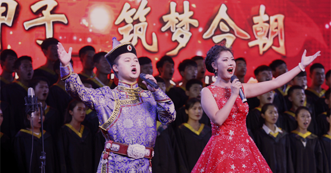 志传甲子 筑梦今朝建校六十周年庆祝晚会隆重举行 9月22日晚7:30分,建校60周年庆祝晚会在校体育馆隆重举行。校党政领导安胜利、吕晓琪、赛音庆格勒、冯志强,部分校友、4000余名师生观看晚会。校党委副书记、常务校长安胜利在晚会上致辞。