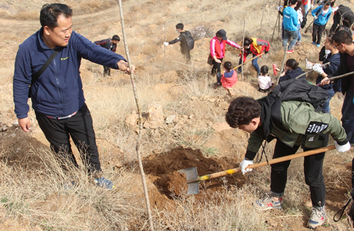 4月15日上午,36365官网第九期青马班全体学员参加了由包头义工组织的在大青山庚毗沟举办的植树活动。植树活动中,学员们各有分工,有的挥锄挖土,有的扶苗填坑,有的挥锹培土,有的夯实土层,植树活动如火如荼地进行着。通过植树活动,学员不仅为绿化环境贡献了一份力量,也了不怕吃苦、团结互助的精神